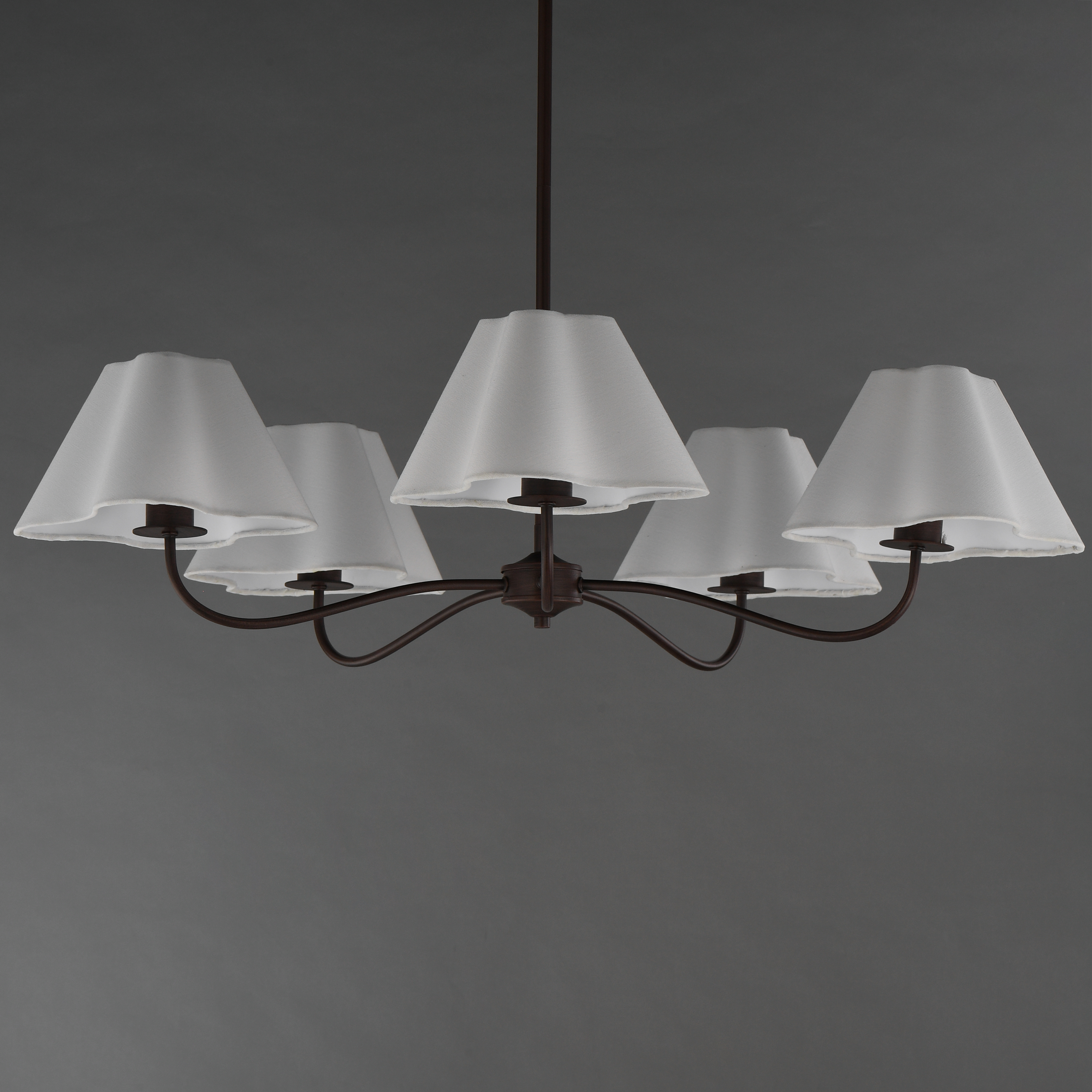 Inspired by classic European candelabra chandeliers, this collection pairs a timeless sweeping frame with shades that set it apart. Swooping arms support soft white linen shades formed in a distinctive undulating wave, adding movement and subtle drama to a familiar silhouette. The contrast between structured metalwork and fluid fabric captures the Kismet House aesthetic-traditional yet unexpectedly elegant, expressive, and quietly memorable.