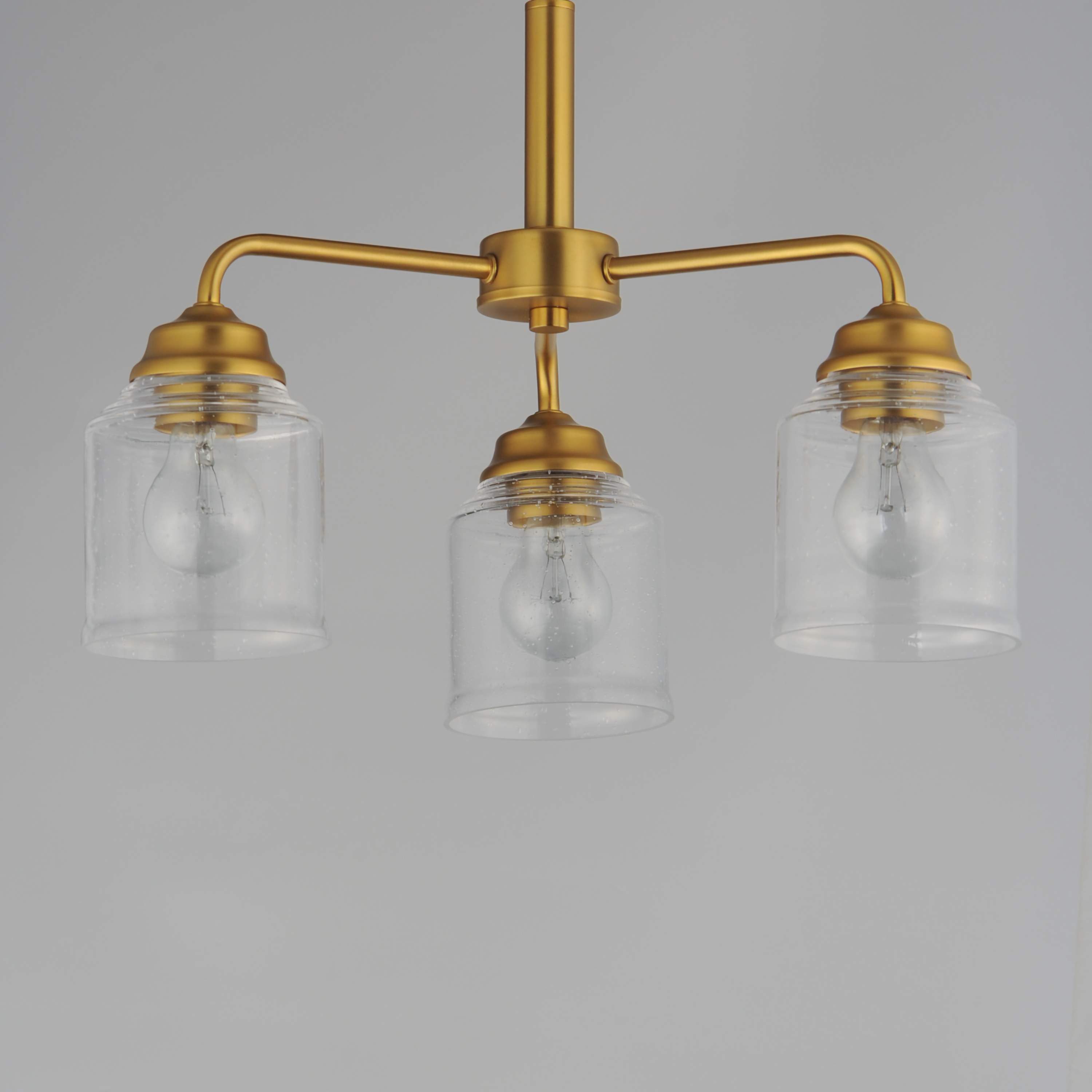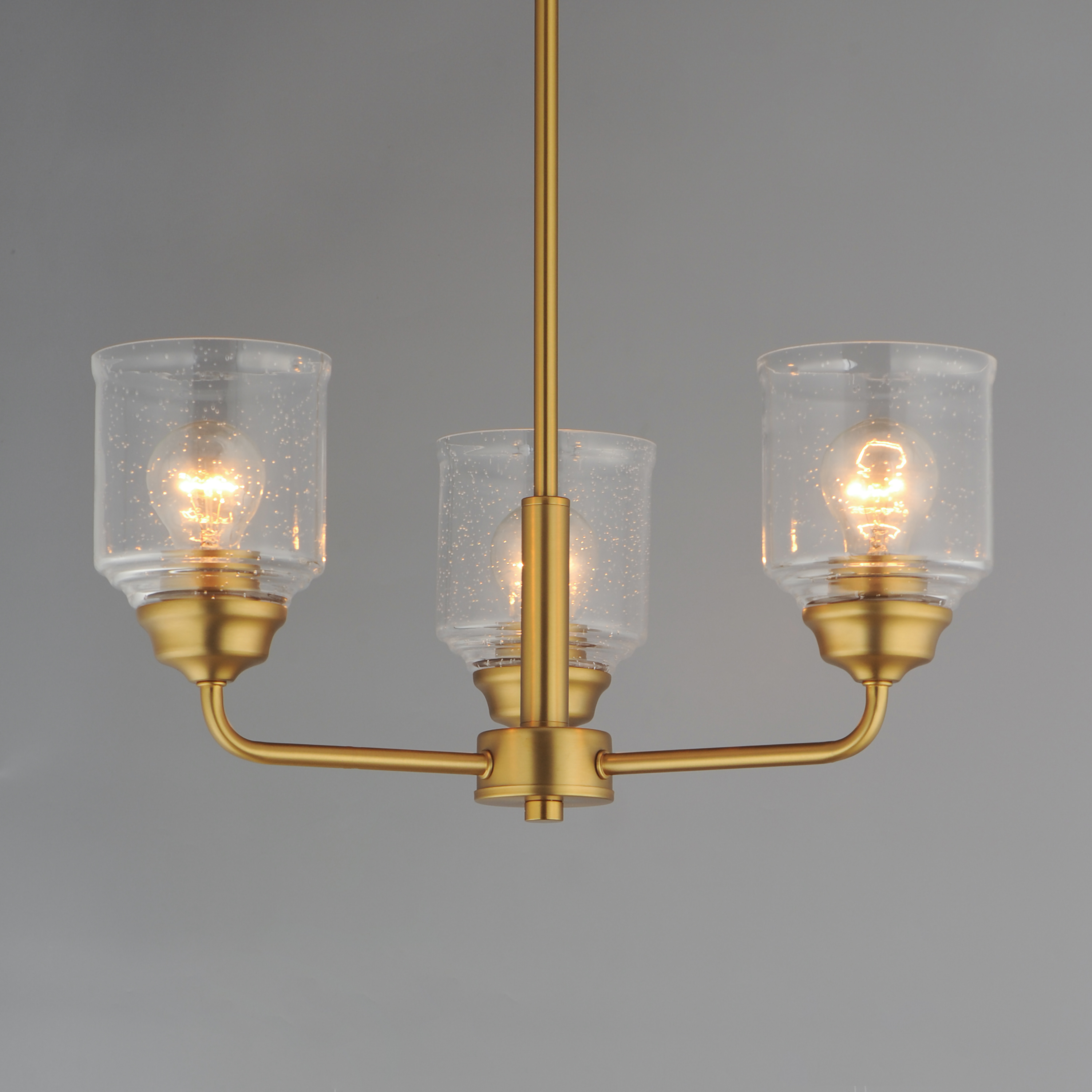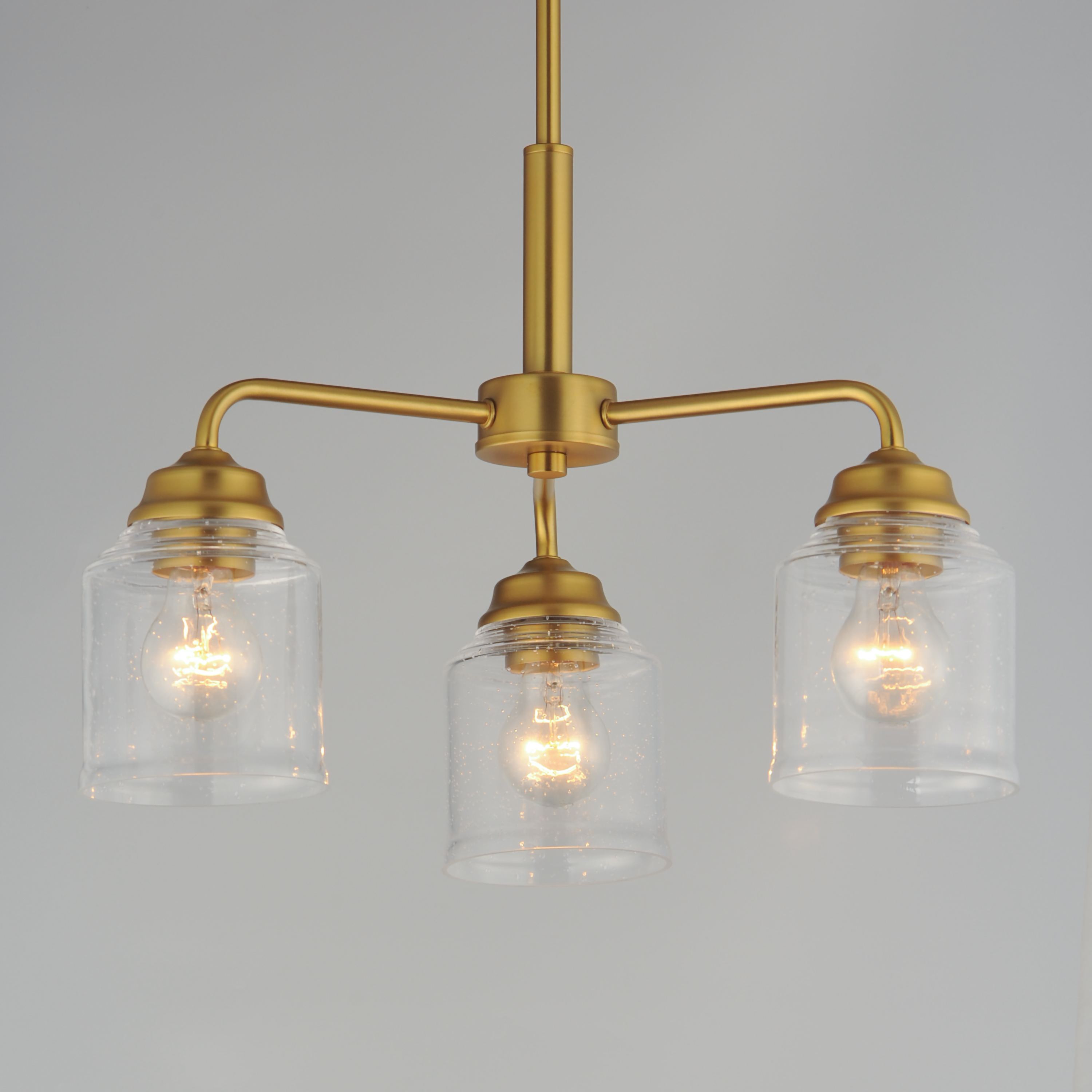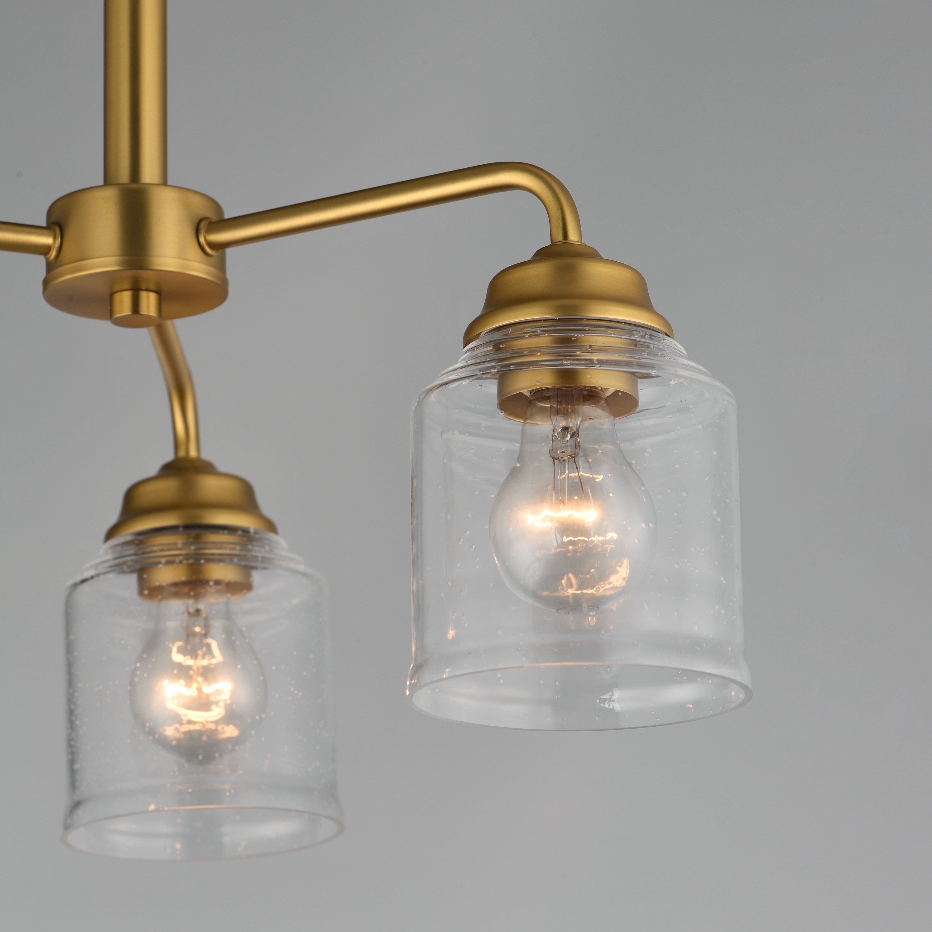 A modest frame of steel tubing gently bends to support a cluster of Clear Seedy bell-shaped glass. Similarly the bobeches and other metal accents echo that traditional bell shape creating an instant classic. An easy choice with transitional appeal, choose from a variety of complimentary finishes including matte Black, Heritage Brass or Satin Nickel.