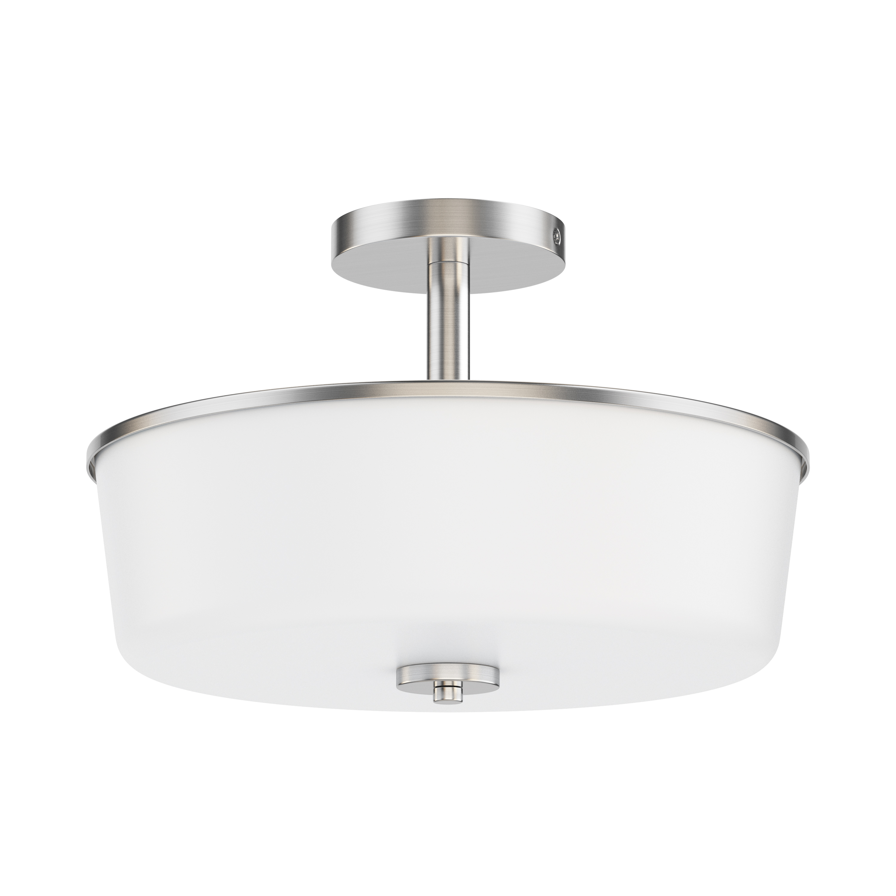 Clean, confident, and versatile, Fuller pairs coordinating pendants and flush mounts to bring tailored simplicity to everyday spaces. A softly diffused glass drum is framed by crisp metal detailing for a balanced look that feels both modern and familiar. Available in two-light and three-light versions, the designs provide flexible solutions for kitchens, halls, and bedrooms. Streamlined silhouettes and timeless appeal deliver dependable style with metropolitan polish.