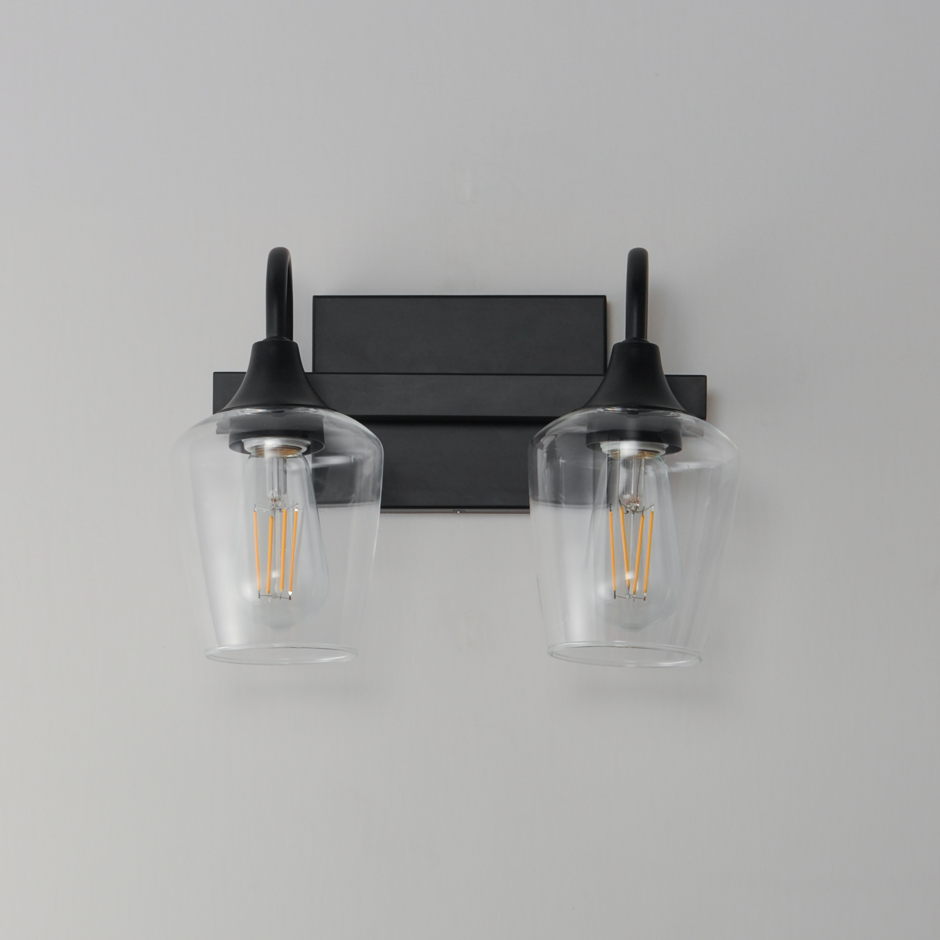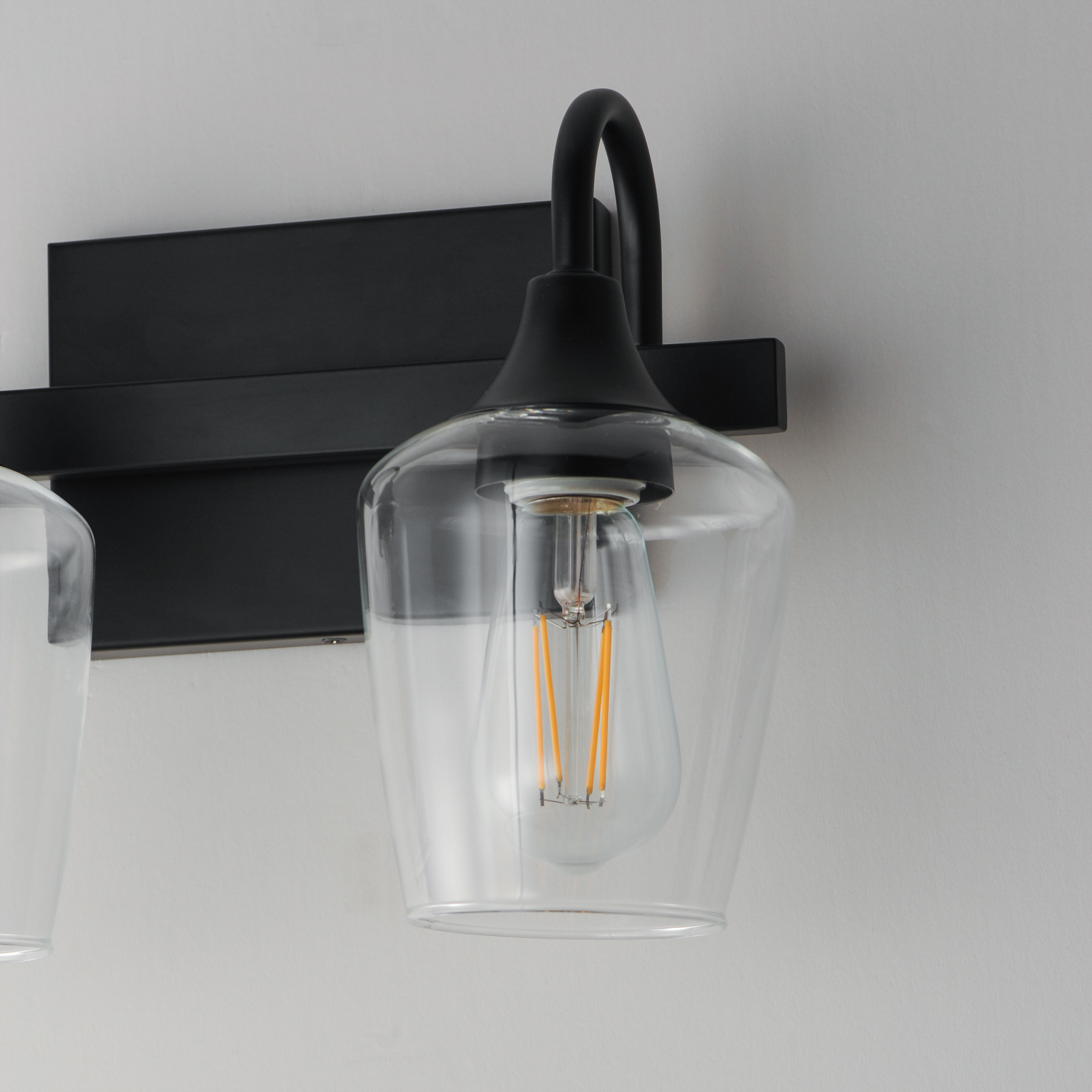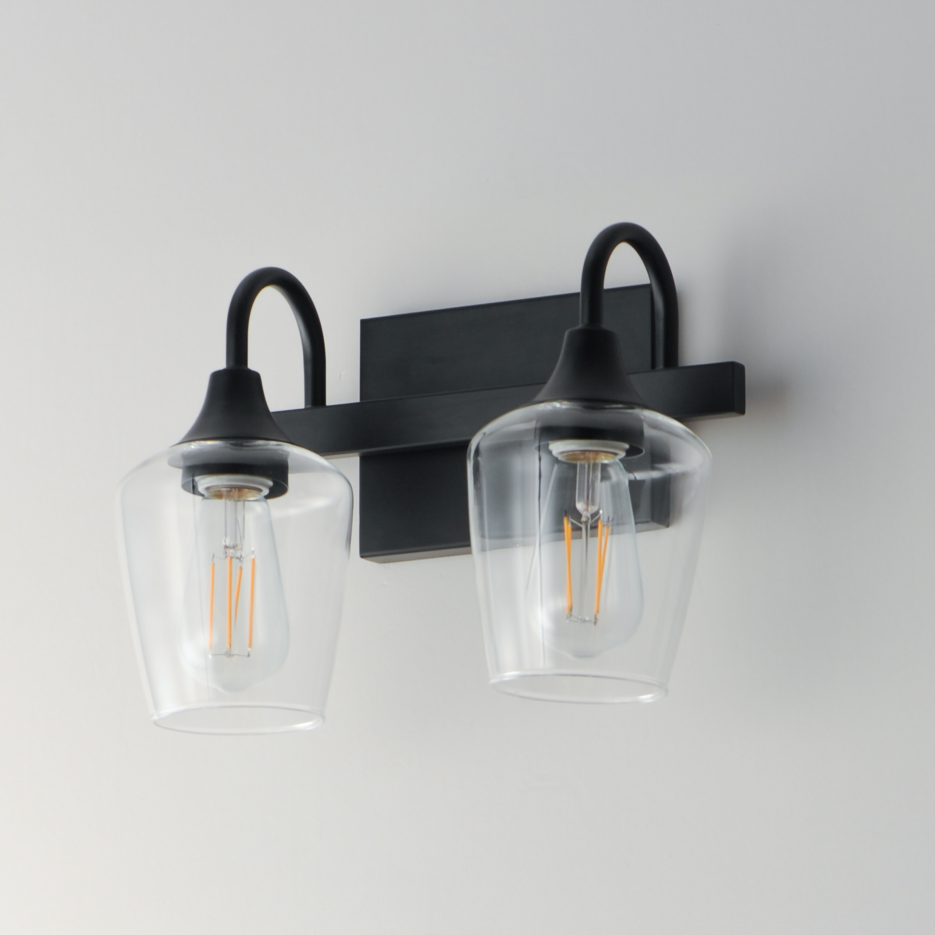 Simple yet elegant frames are finished in two tone finishes to add upscale element to this economical collection. Frames are available in either Bronze with Antique Brass accents or Black with Satin Nickel accents. Both are supplied with Clear glass shades inspired by stemware for a tailored profile.