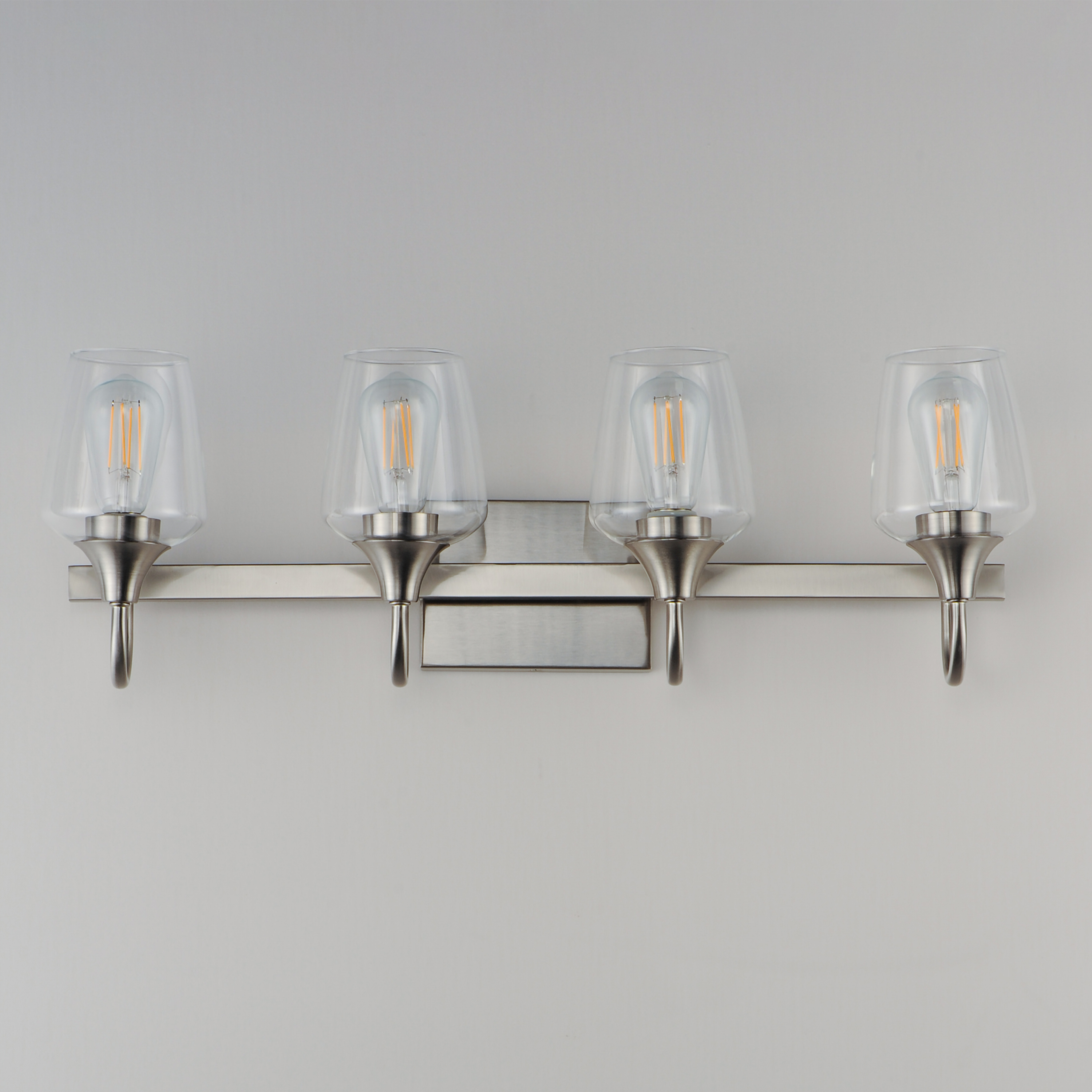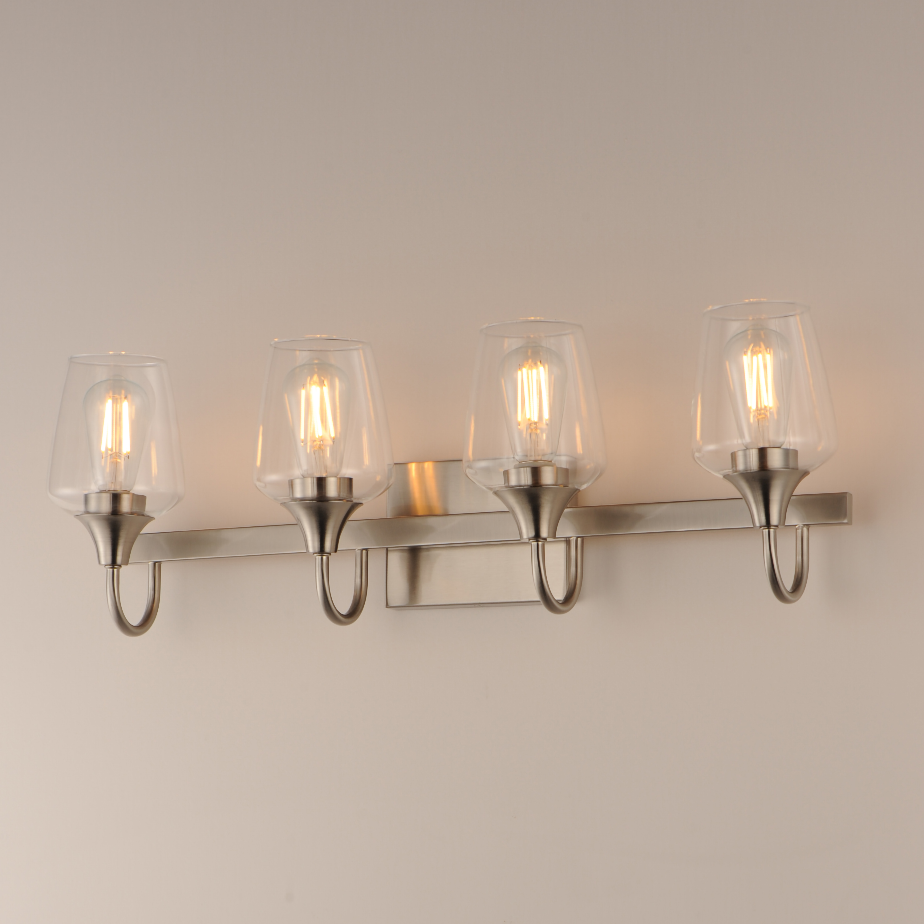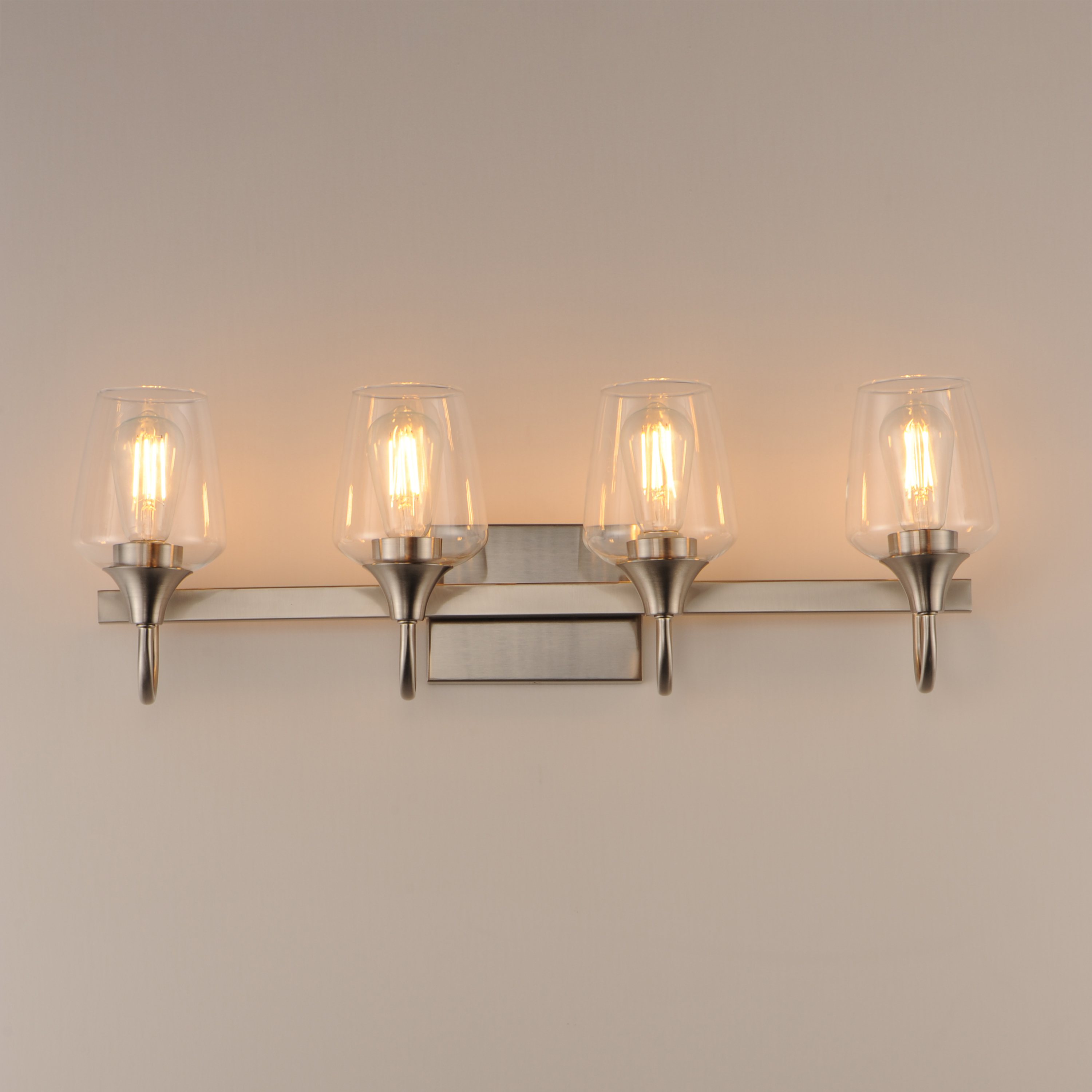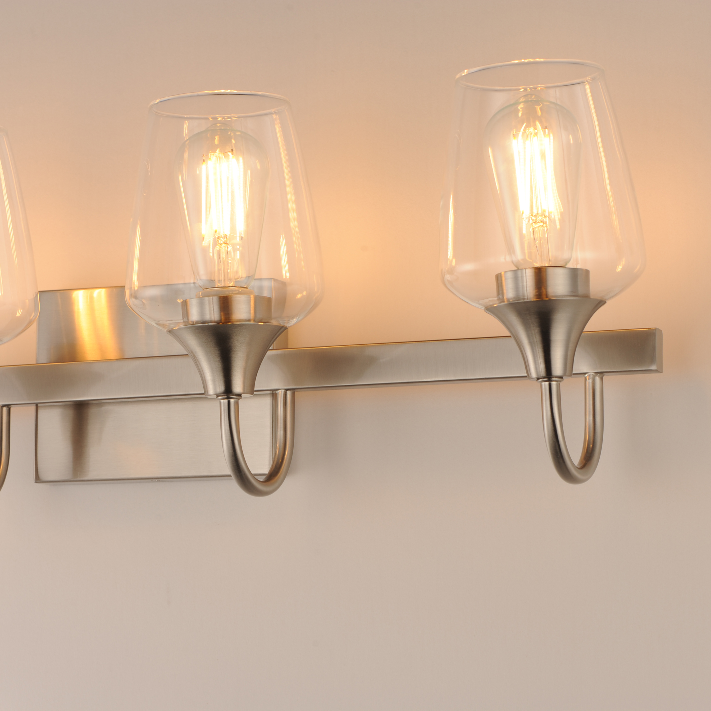 Simple yet elegant frames are finished in two tone finishes to add upscale element to this economical collection. Frames are available in either Bronze with Antique Brass accents or Black with Satin Nickel accents. Both are supplied with Clear glass shades inspired by stemware for a tailored profile.