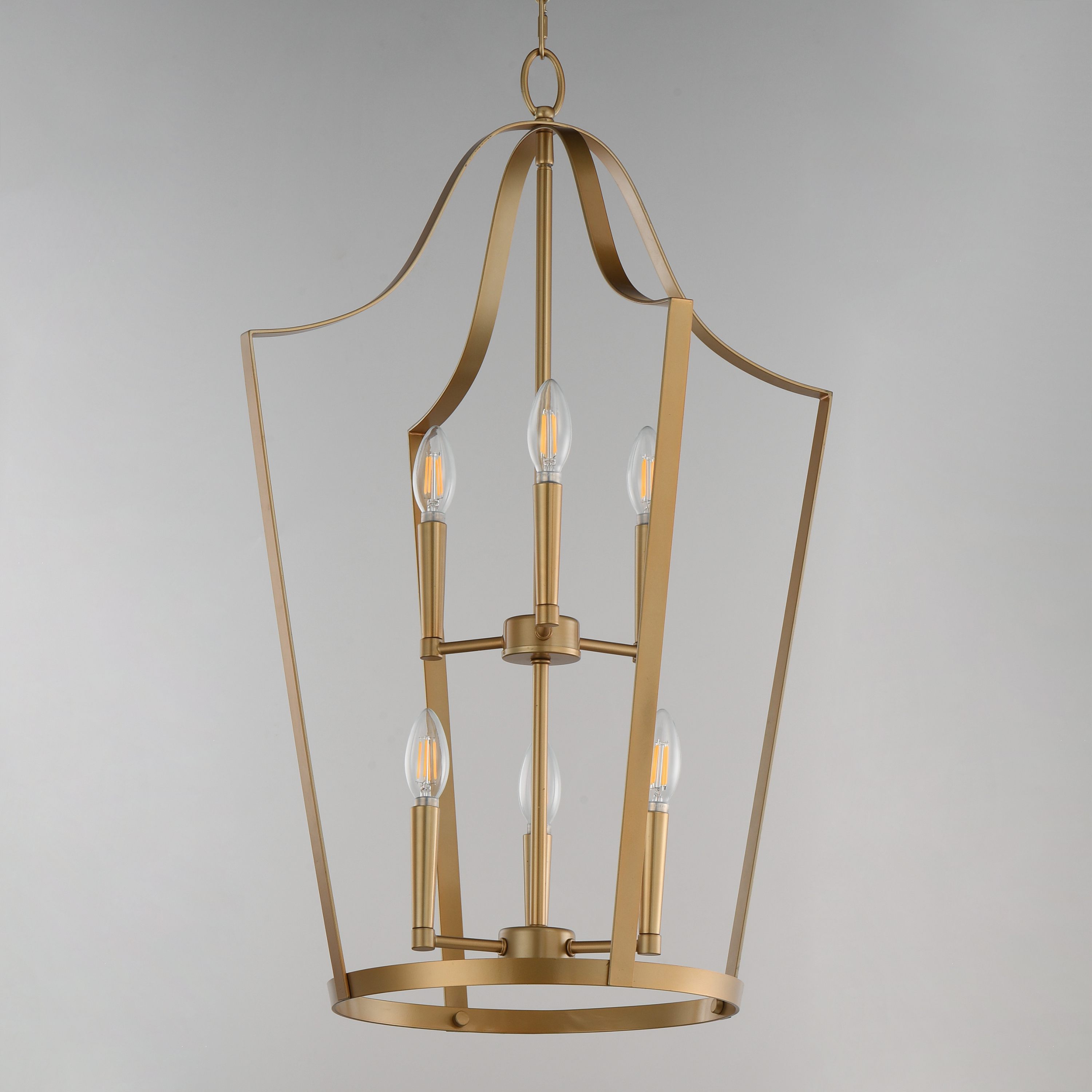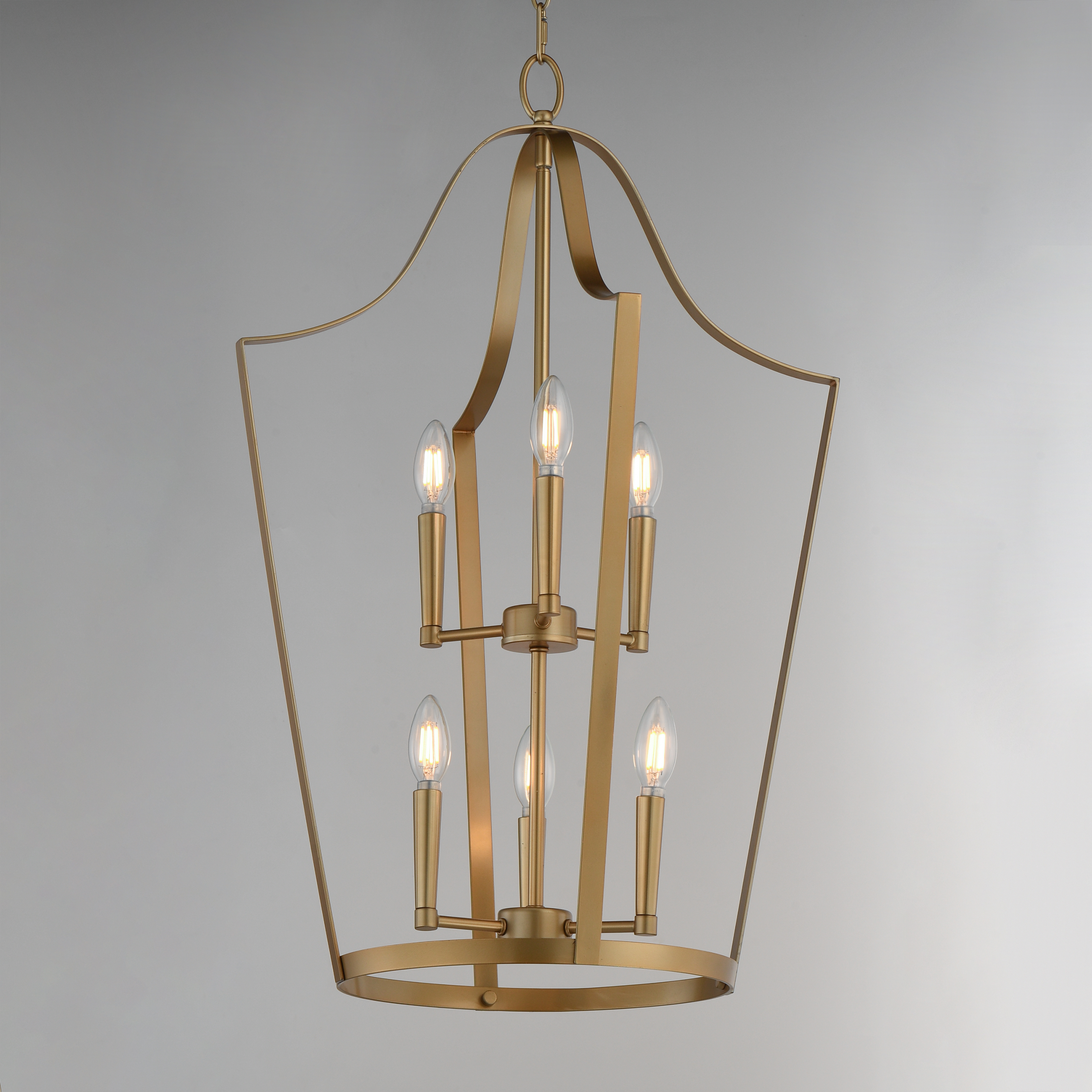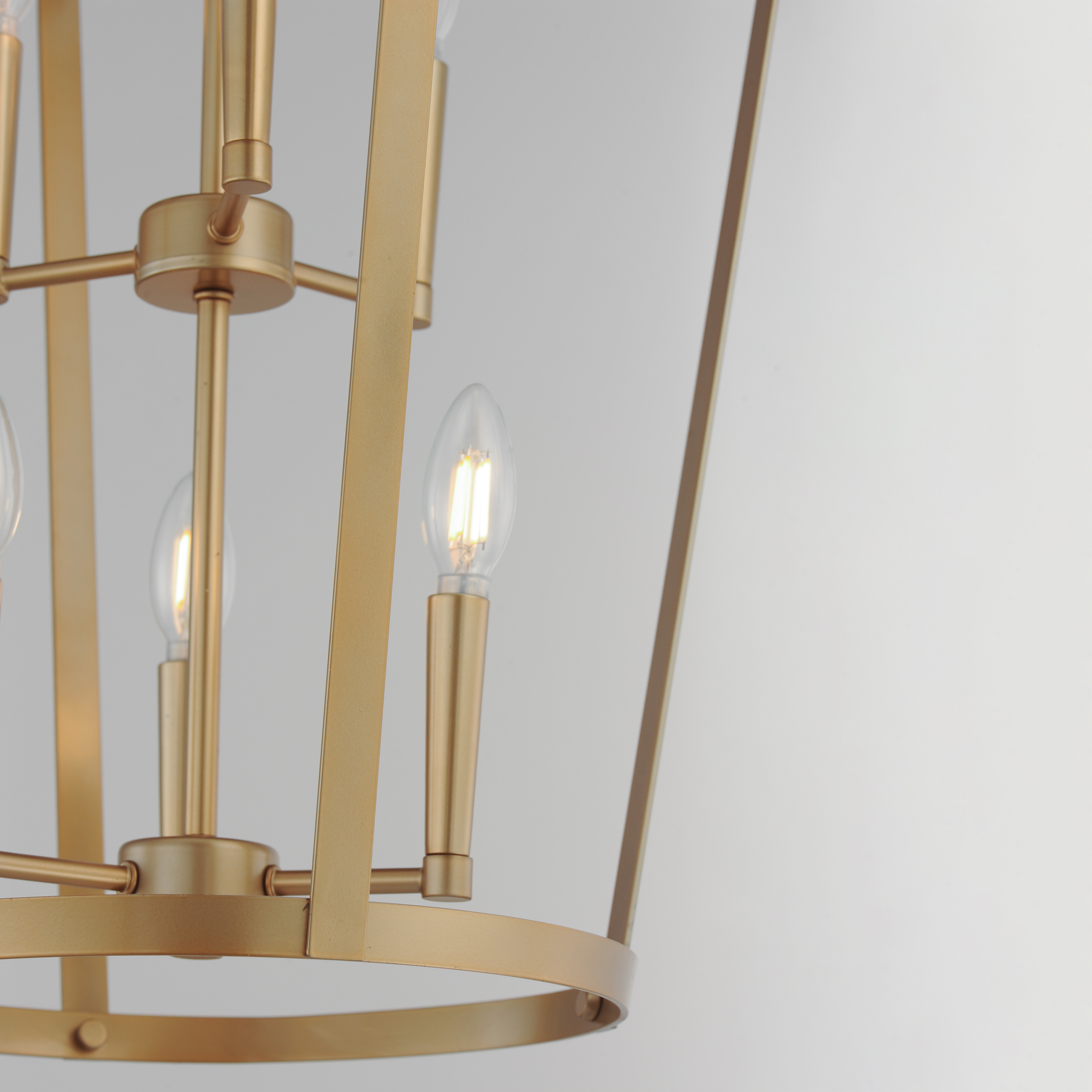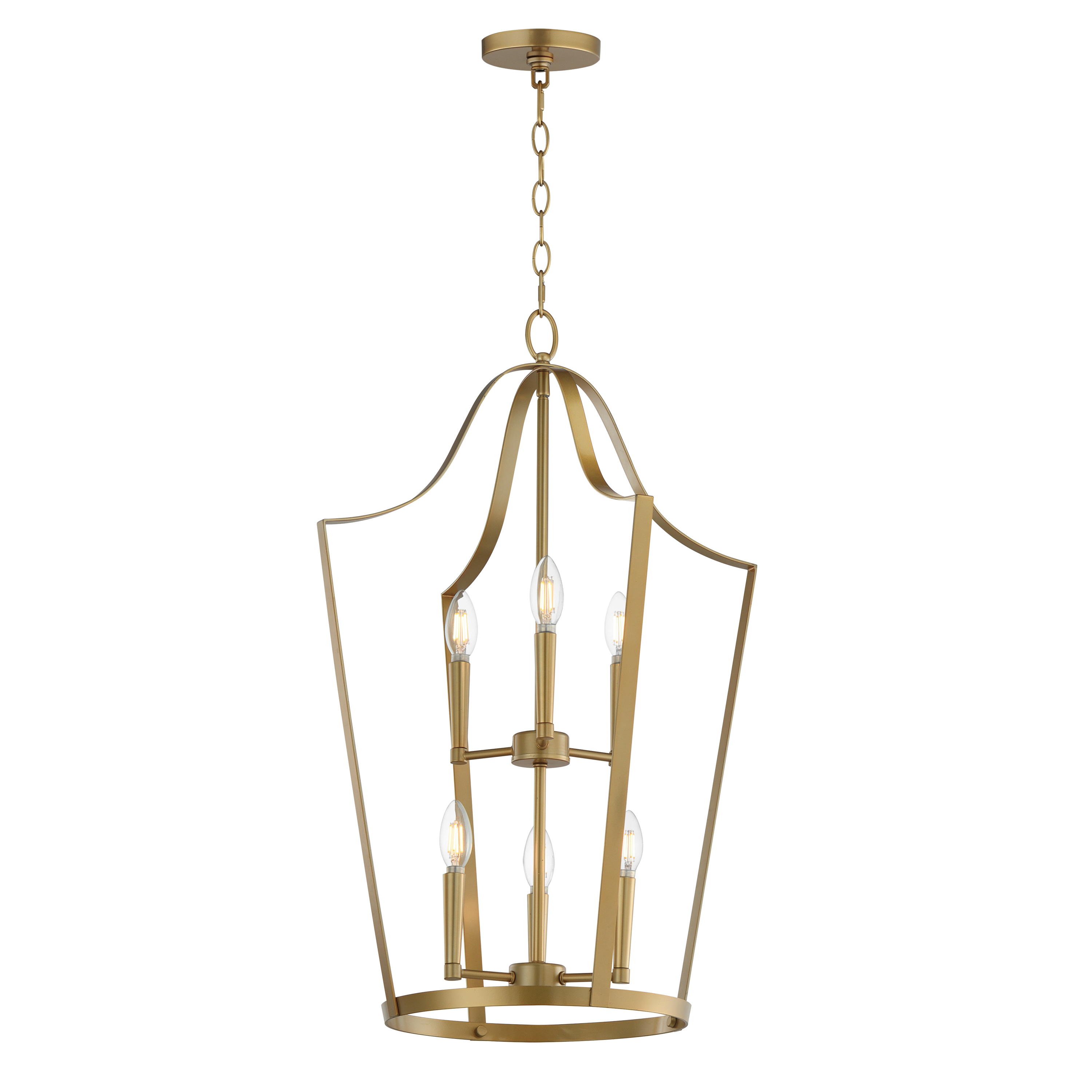 A classic bell-shaped lantern is reimagined with clean folding bands of flat sheet metal for a refined architectural look. Within the open silhouette, a cluster of candelabra lamps adds warmth and visual depth. Offered in Black, Satin Nickel, and Natural Aged Brass, the designs balance traditional form with modern simplicity. A convertible single pendant adapts easily into a flush mount for smaller spaces, making Arden a versatile, elevated solution across interiors.