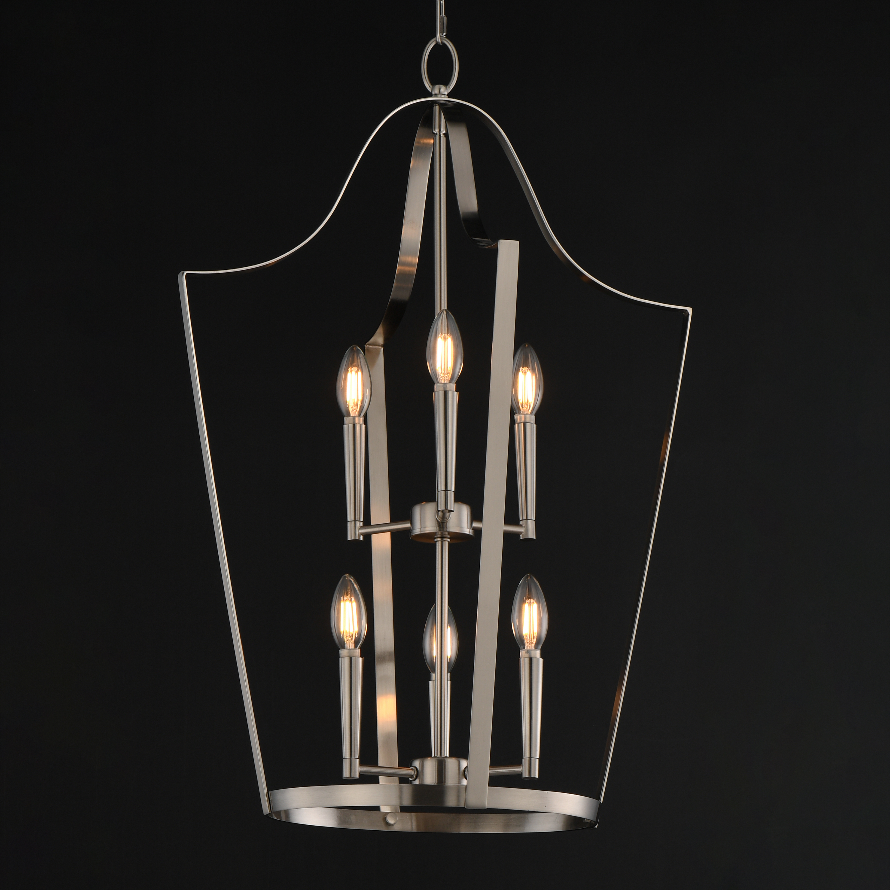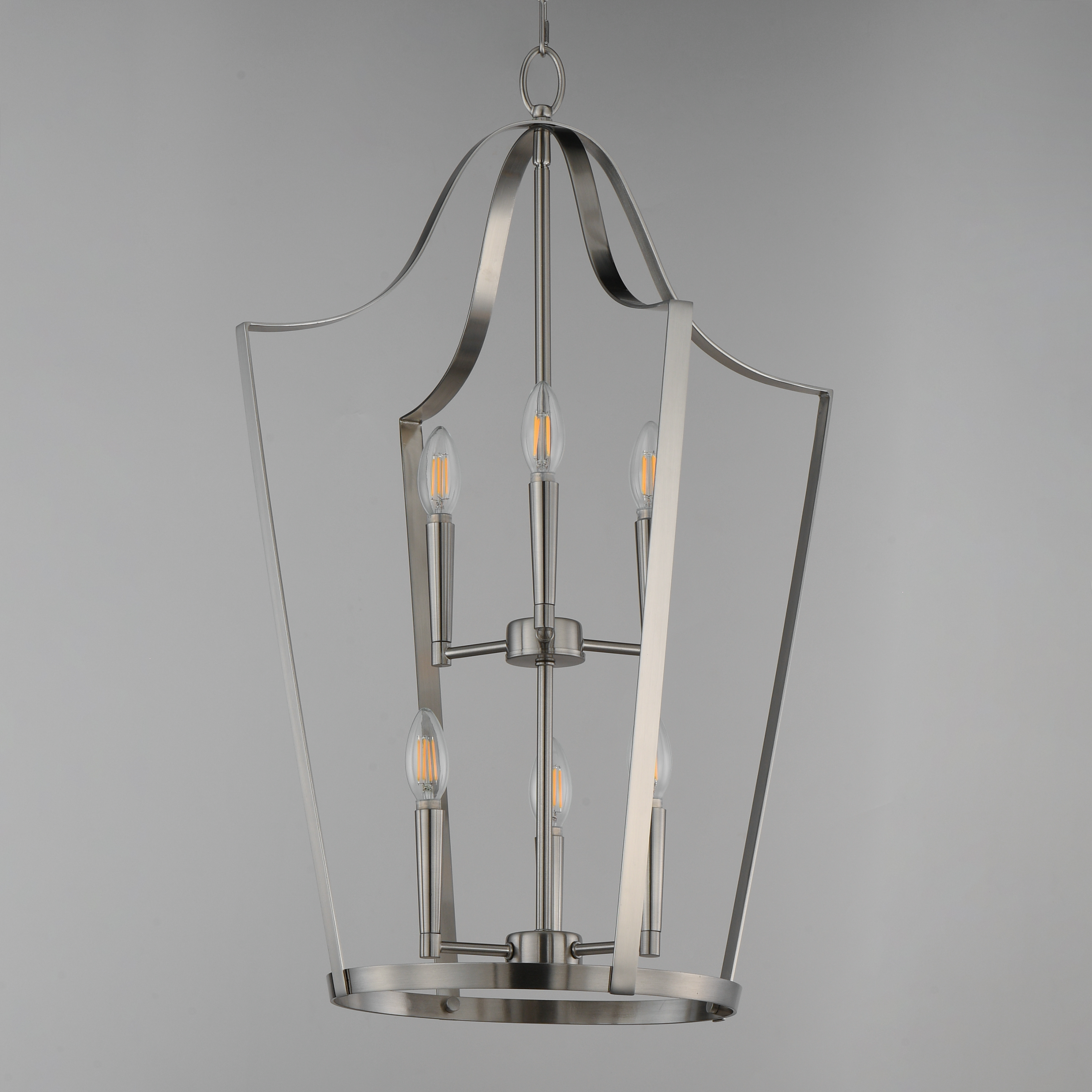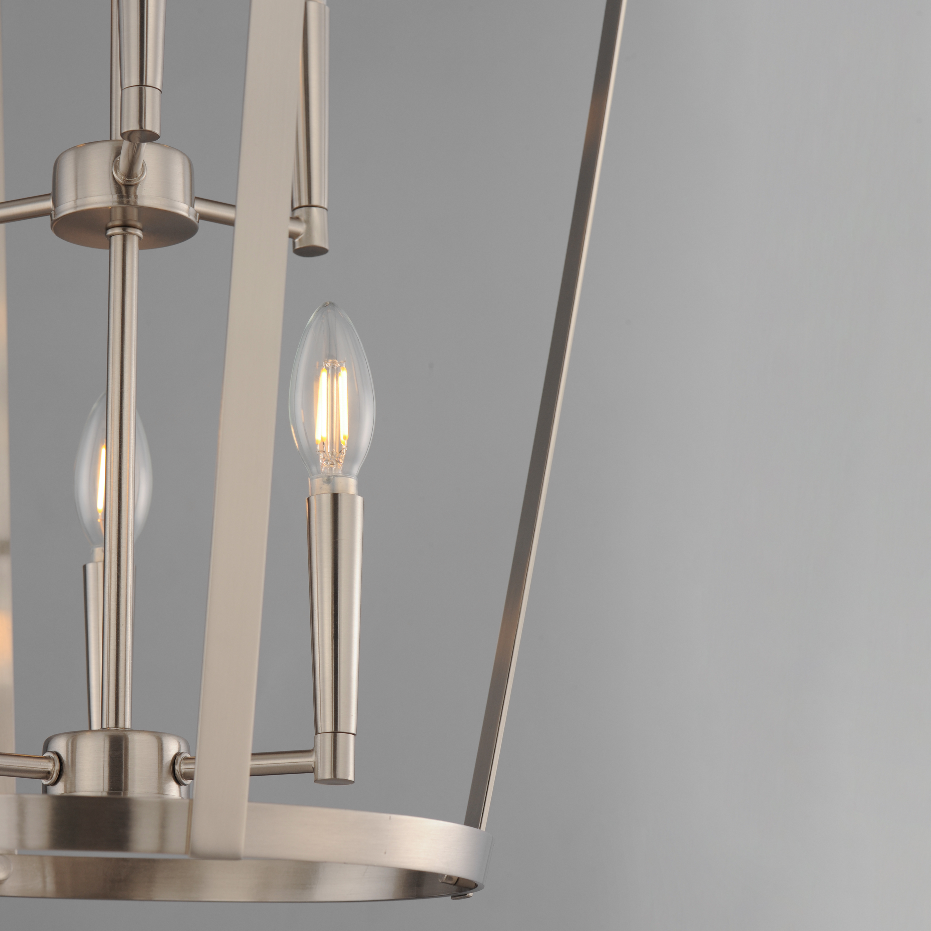 A classic bell-shaped lantern is reimagined with clean folding bands of flat sheet metal for a refined architectural look. Within the open silhouette, a cluster of candelabra lamps adds warmth and visual depth. Offered in Black, Satin Nickel, and Natural Aged Brass, the designs balance traditional form with modern simplicity. A convertible single pendant adapts easily into a flush mount for smaller spaces, making Arden a versatile, elevated solution across interiors.