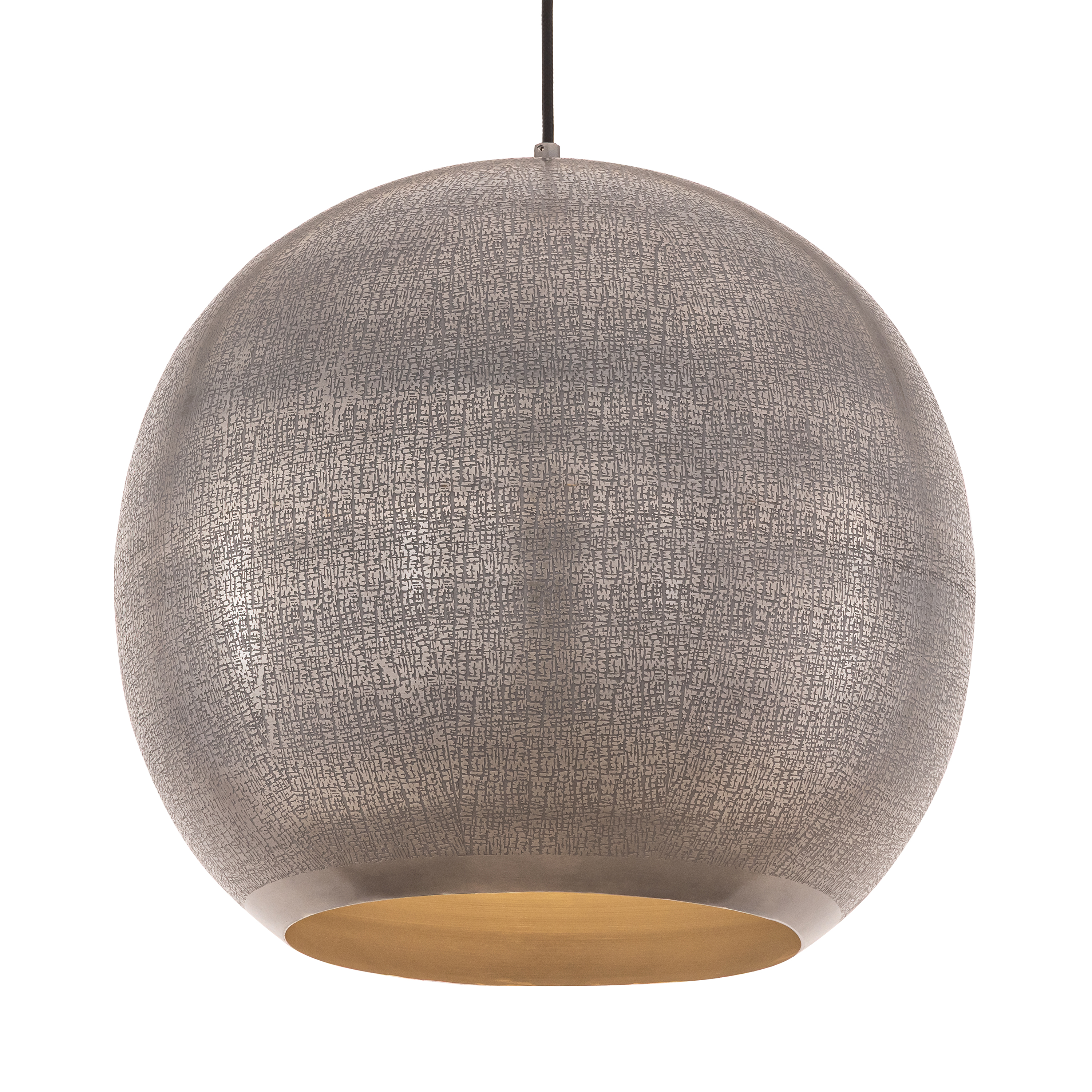Rooted in ancient artistry and shaped for modern spaces, Aurelia is a study in timeworn opulence. Each globe pendant is formed from etched metal with a soft, tactile finish that evokes handcrafted metalwork. Finished in a warm brass tone, the shade conceals the light source entirely, casting a gentle, ambient glow that radiates from within. A black rayon cord adds a refined contrast, while a coordinating ADA-compliant backlit wall sconce completes the collection with subtle drama. Offered in multiple sizes, Aurelia brings a timeless, sculptural presence to any interior.