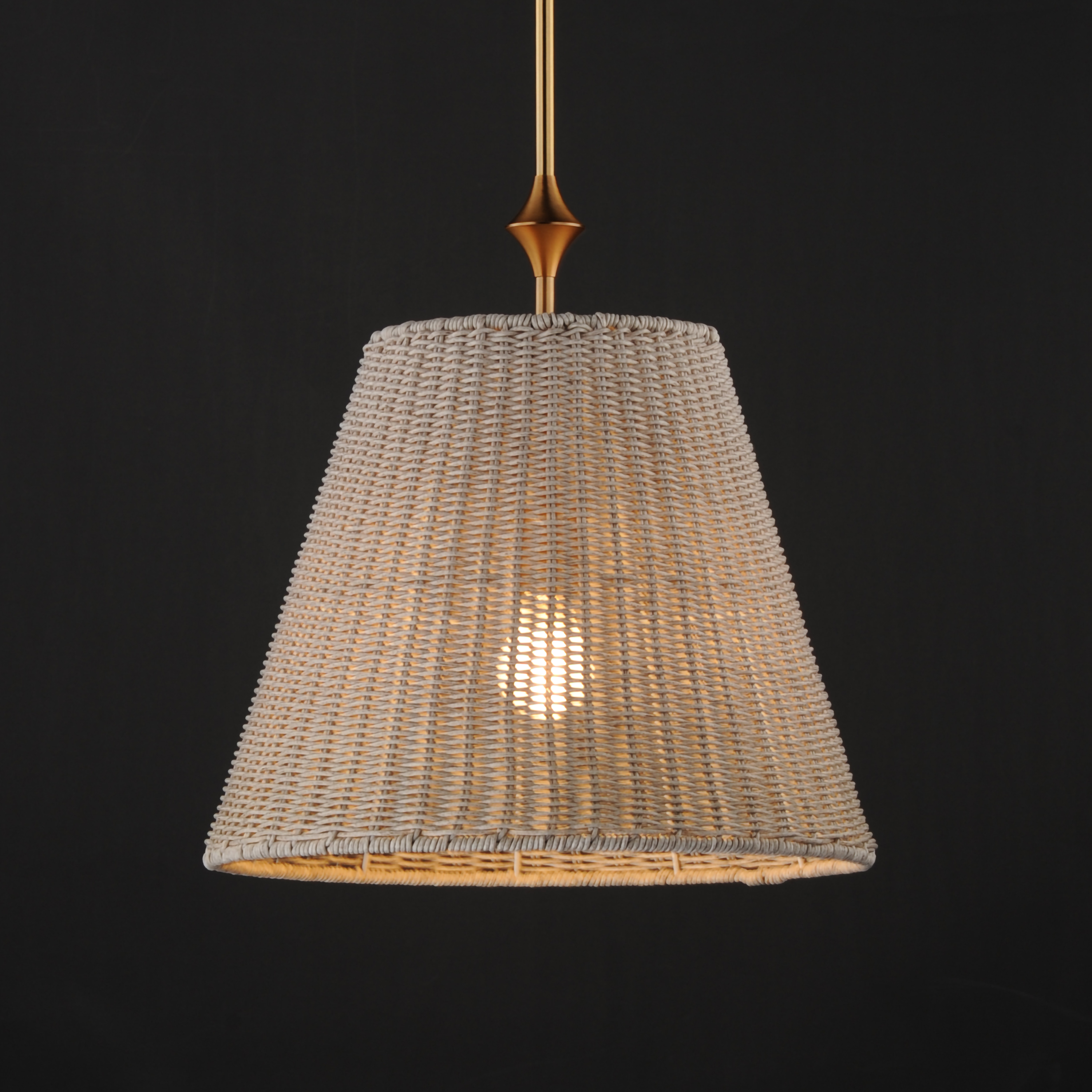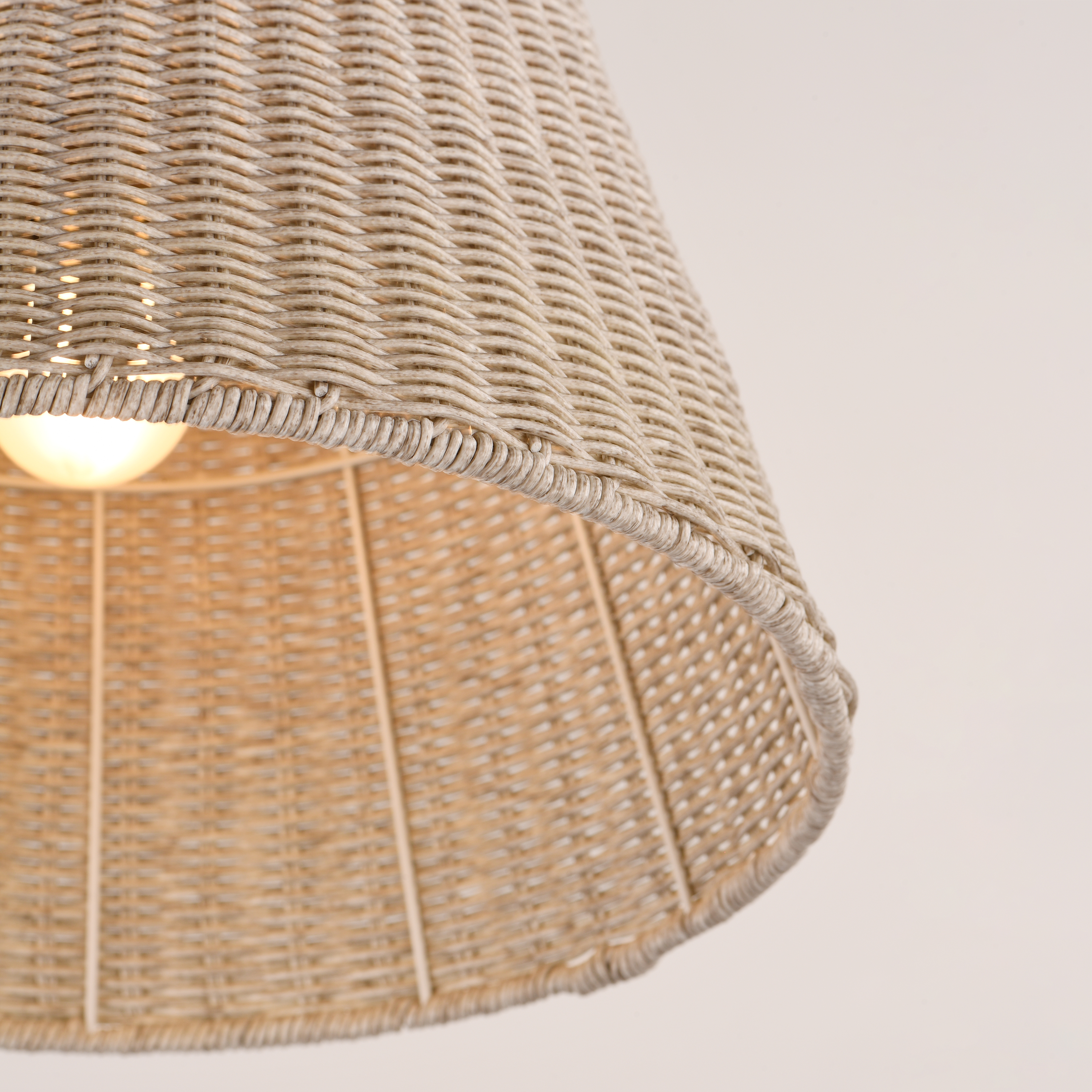 Featuring wicker shades made of synthetic rattan, this bath vanity lighting collection brings an elegant coastal flair to your space. Choose from a Natural wicker finish with a Dark Bronze frame accented by brushed golden highlights, or a Weathered White rattan with a Natural Aged Brass frame for a timelessly elegant composition.