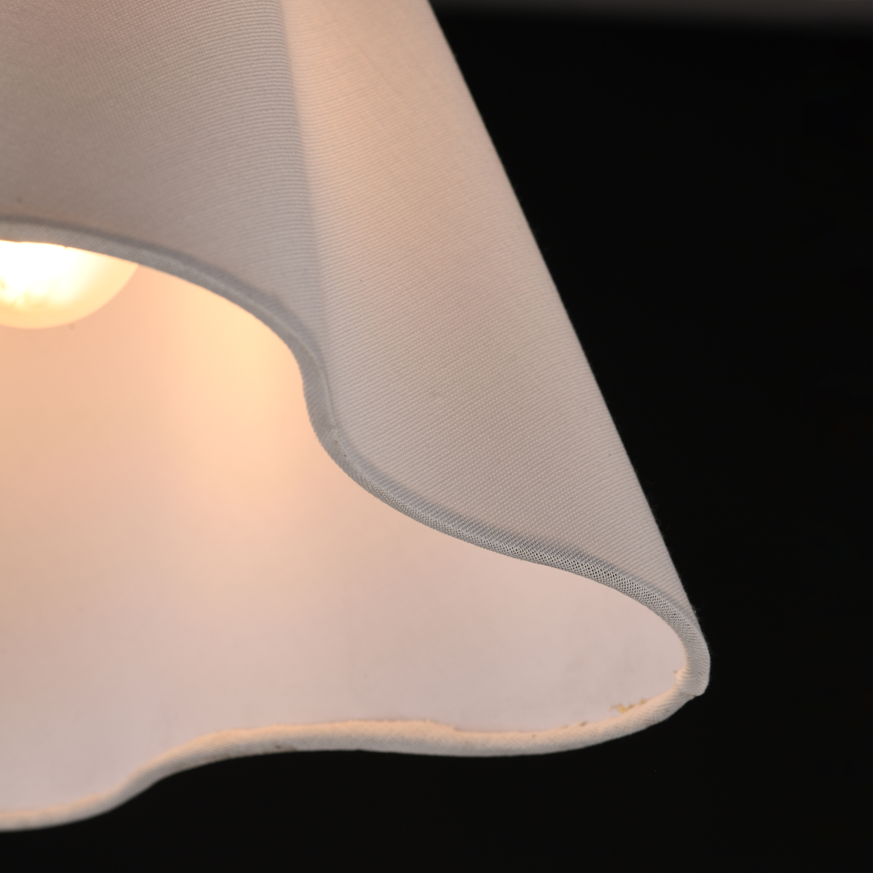 Inspired by classic European candelabra chandeliers, this collection pairs a timeless sweeping frame with shades that set it apart. Swooping arms support soft white linen shades formed in a distinctive undulating wave, adding movement and subtle drama to a familiar silhouette. The contrast between structured metalwork and fluid fabric captures the Kismet House aesthetic-traditional yet unexpectedly elegant, expressive, and quietly memorable.